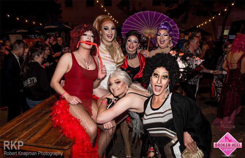 The programme included the Palace Hotel’s outdoor festival, heritage laneway galleries, and Saturday’s parade down the main ‘drag’ that saw 2,500 people line Argent Street to watch the costumes and floats, including the Festival’s own Mardi Gras float – a 5-metre stiletto, adorned with 15 dazzling queens.