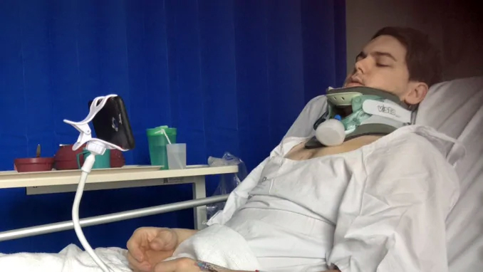But on one particular occasion an enthusiastic member of the audience followed suit, and while the singer was likely passed overhead across the room, his disciple landed heavily on 28-year-old Anthony Robinson, causing spinal damage.