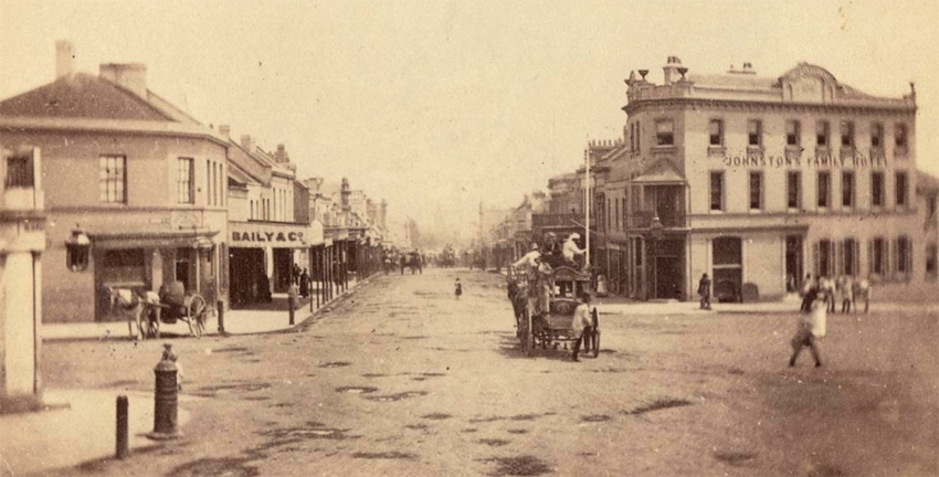 The pub has a befitting reputation for reinvention, first opening in the early 1850s as the Queens Arms. Over the following decades it morphed and moved slightly in its precise location, becoming the Cottage of Content in 1860, Johnston’s Family Hotel in 1872, Ryan’s Family Hotel in 1885, and Midland Hotel in 1900.
