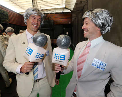 In the same vein, The Ritchies donned their quintessential fawn/pale brown/cream or beige sports jacket, arriving at the Woollahra to register and kit up with silver wigs and a Nine Wide World of Sports microphone.
