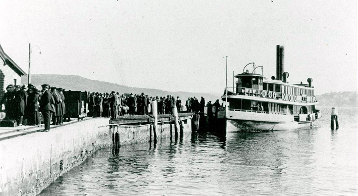 Ferry docking at Quarantine Beach, c.1919