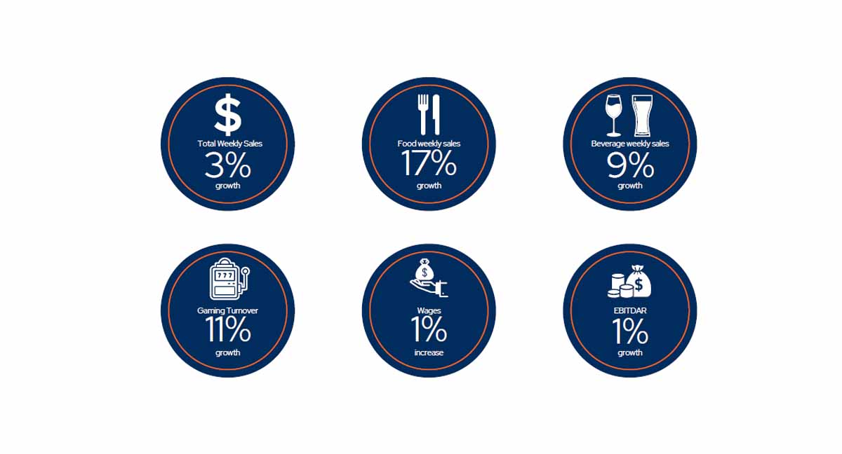 Leading the charge were food and beverage sales. Dining continues to outperform, increasing by a very significant 17 per cent, which furthers the 10 per cent increase in the previous quarter.