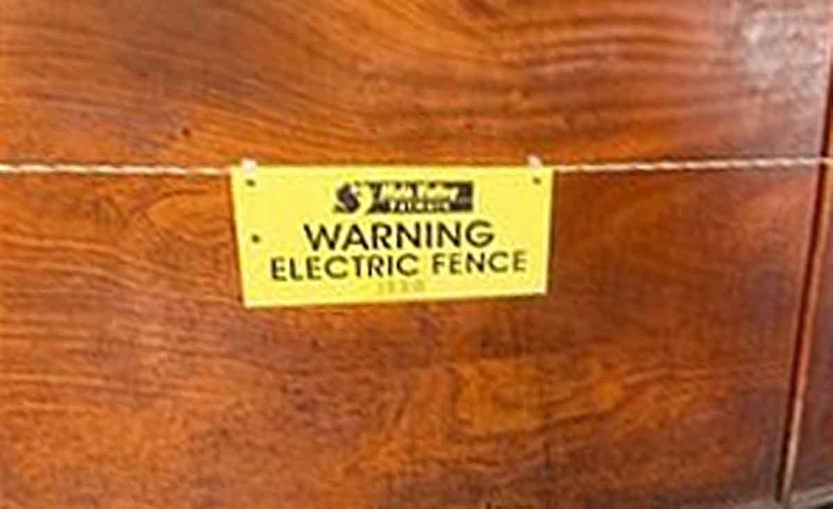 The high-voltage deterrent is reportedly not actually on, but the community is certainly familiar with electric fences and tagged with a polite warning, it has the desired effect.