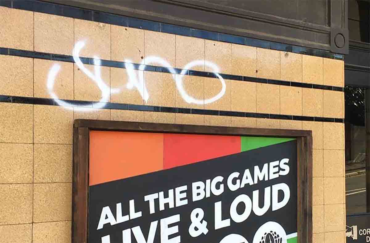 For reasons known only to them, at least one of the men decided to ‘tag’ the pub in at least four places, spray-painting meaningless graffiti for the owners to remedy.