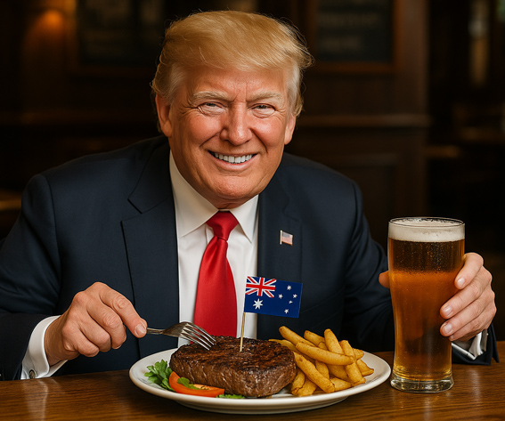 Fighting back against tyrannical tariffs, the publicans have vowed to “make steak great again” by offering a 10 per cent discount to customers who order a (T)rump steak.