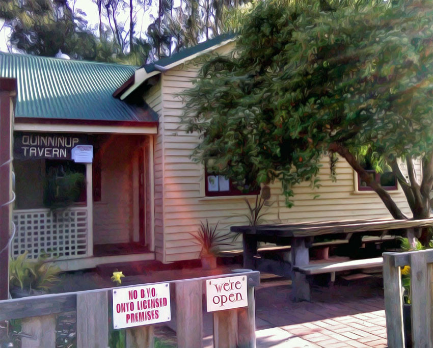 The Quinninup Tavern, known as The Quinny, was built in 1950 in the emerging logging town of Quinninup, around 300 kilometres south of Perth.