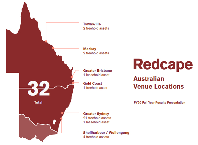 “We have been able to emerge from the shutdown with our venues once again becoming community-centric hubs that deliver the customer experiences for which we are valued,” offers Redcape CEO, Dan Brady.