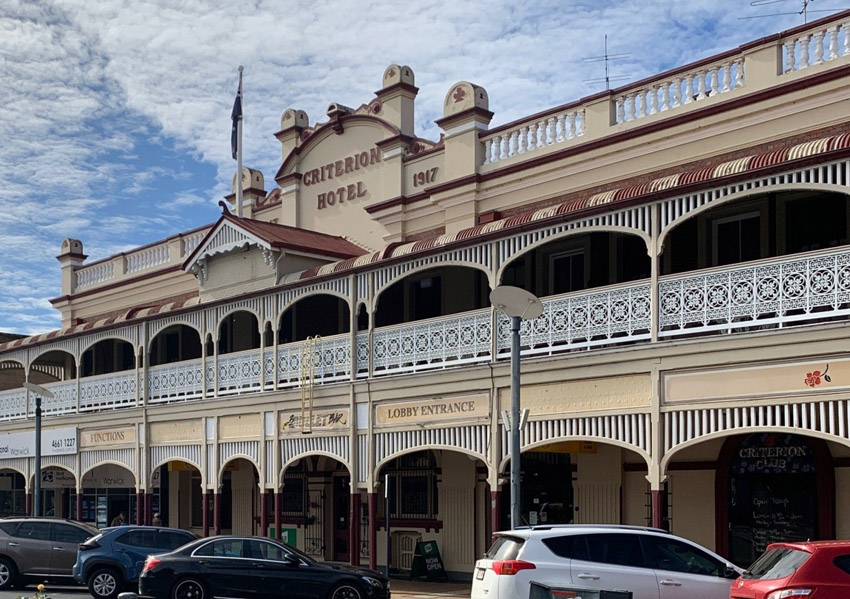The two-storey brick Criterion of today was built in 1917, for the Allman family, for an estimated price of £12,000. It replaced the existing Criterion, which was a single level timber Hotel, on the site since the 1860s.