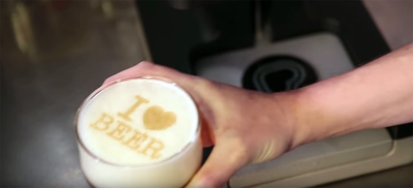 Beer Ripples uses an edible malt-based ink to create the impression. It requires no special training, featuring a simple touchscreen, plus incorporating its own app for iOS or Android phones for higher functions.