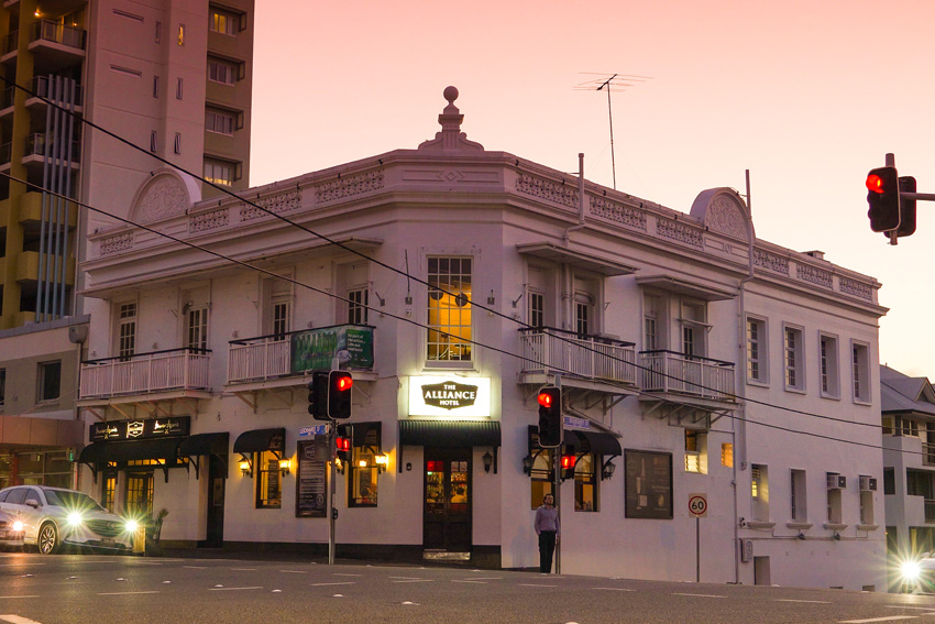 Perched on a 478sqm corner site on a crest of Boundary Street, at street level it offers a public bar, bistro and kitchen, the ‘chalet’ bar and function room on the lower level, and upstairs another function room and a manager’s residence.