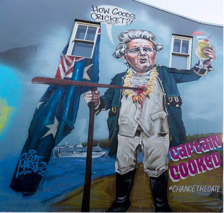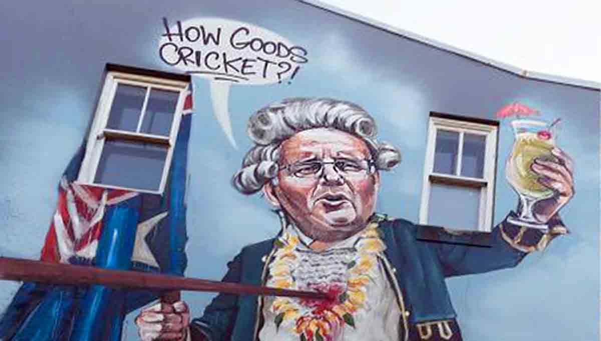 No stranger to controversy, Marsh continues a theme in mockery of Prime Minister Scott Morrison, depicting him as “Captain Cooked” in a huge mural overlooking Maria Lane. This is the latest of several controversial murals painted by Marsh on the BVH, most famously including one of former PM Tony Abbott and Cardinal George Pell in a compromising situation.
