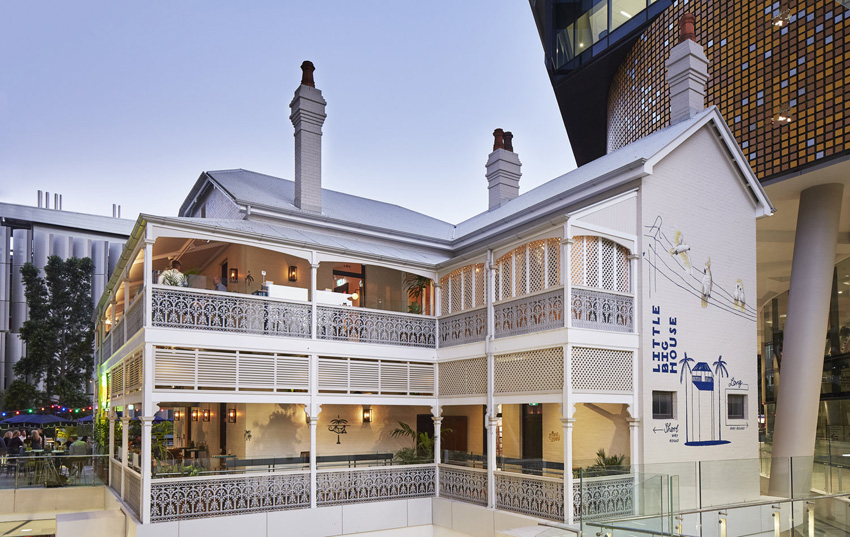 Built 1889, the classic two-storey Queenslander was a residential home until 1984, then a restaurant during Brisbane’s Expo ’88 and later a police station. The Southpoint project saw it raised several storeys and construction undertaken below and around it.