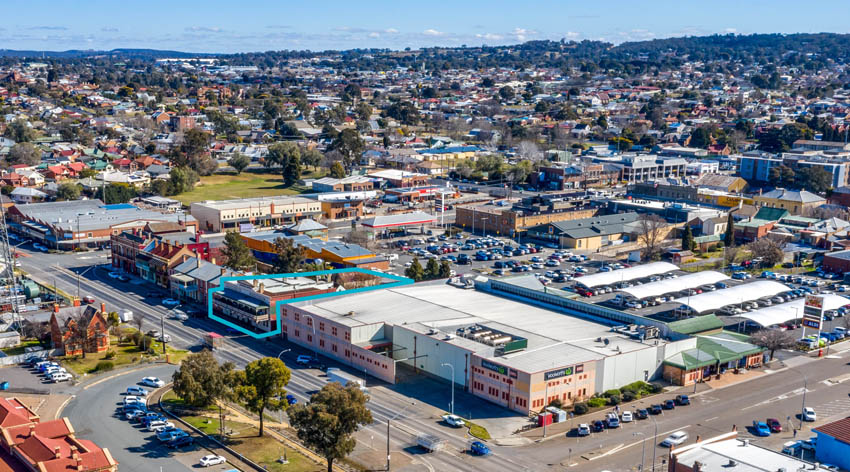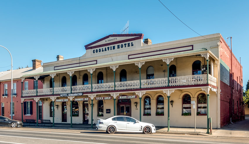 The Southern Railway was built 1872 on sizeable 1,531sqm lot as the Coolavin Hotel, directly across from Goulburn train station and adjacent to what is now a Woolworths and Aldi-anchored shopping centre.