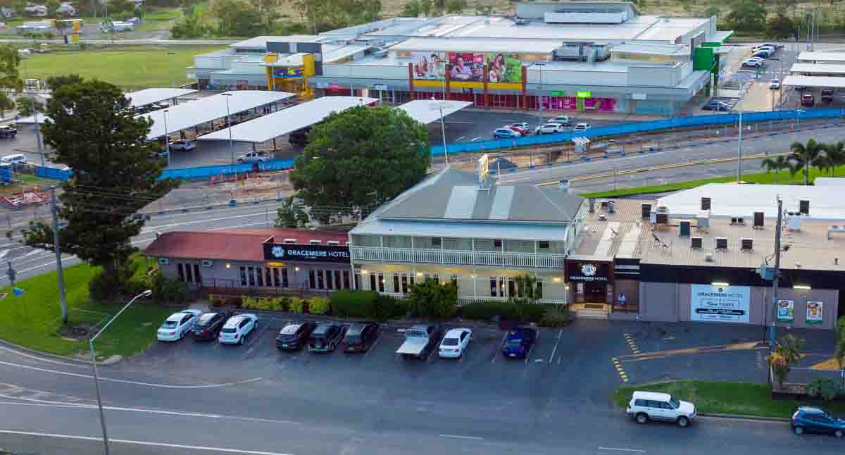 Established 1885, set on 3,970sqm opposite the Woolworths-anchored Gracemere Shopping World shopping centre, the venue offers patrons a public bar, TAB and gaming room with 33 machines, bistro, large beer garden, kids’ play area, and busy drive-through bottleshop.