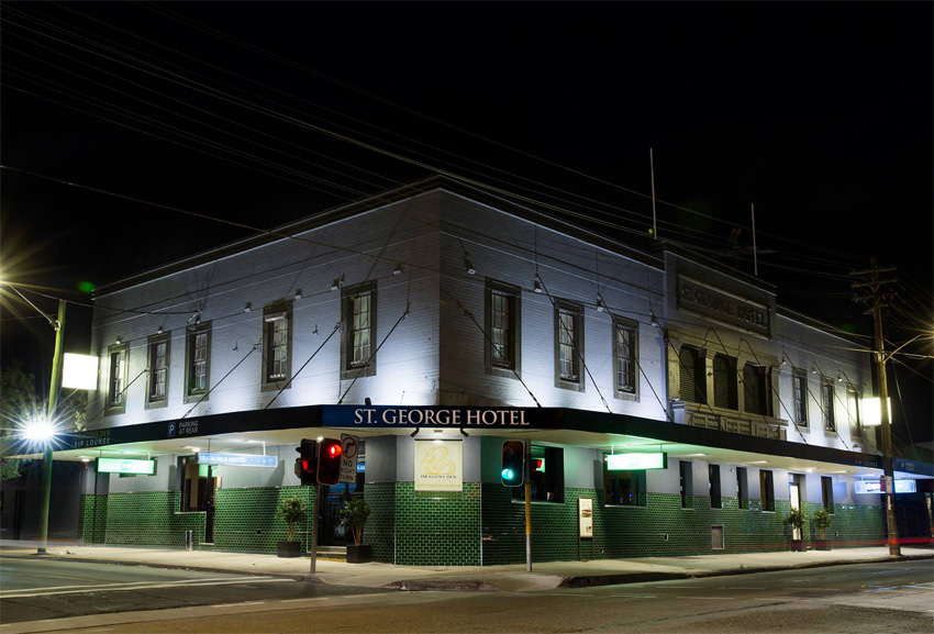 The St George Hotel was sold by Redcape for around $47 million in late 2021 to Michael Wiggins and Joanne Cassar, who previously owned the Oxford Hotel at Drummoyne, before selling it to Laundy Hotels in 2019.