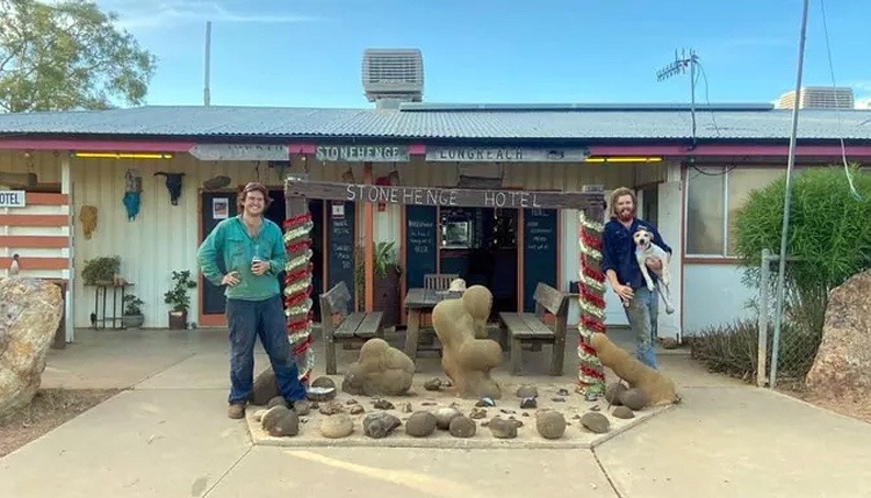 A night of drinking and offer of an interest-free loan led to old mates Tom Auriac and Grant Champion buying the pub in the in the town of Stonehenge in 2021.