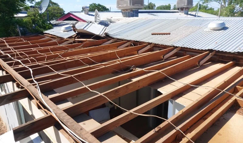 A week before Christmas, winds of up to 96 kilometres per hour ripped through the town and the pub’s roof. Around 40 per cent of the building was damaged and the kitchen flooded, as a large section of roof was stripped and tossed 50 metres.