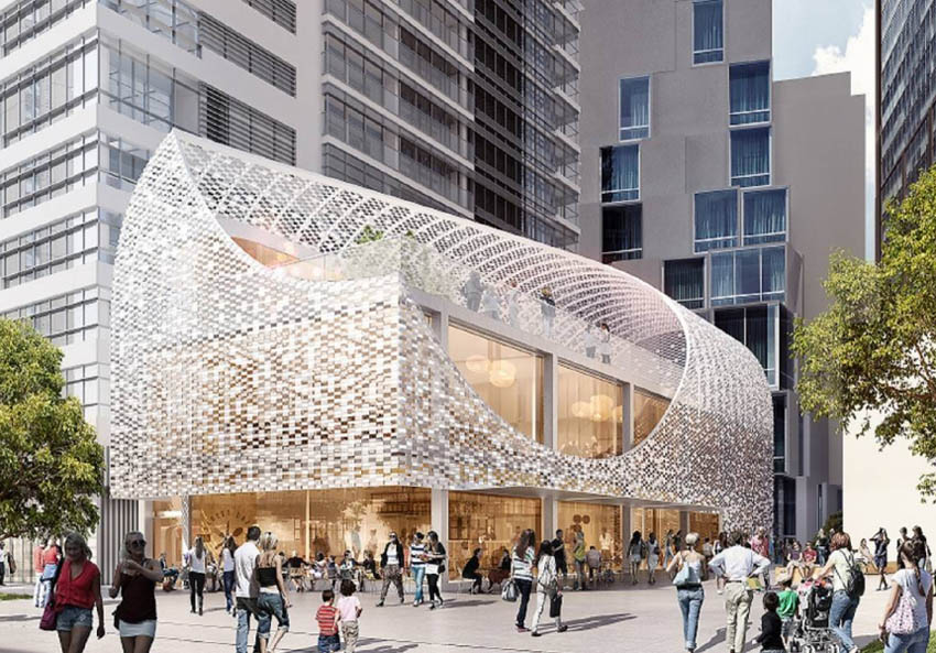 The ceramic tiles on the birdcage-like façade and design by architect Stewart Hollenstein (image below) is said to take inspiration from the traditional Australian pub tiles. The new pub will be part of a broader development that includes laneways lined with retail, a community space, commercial premises and two 55-storey buildings, facing George Street and parallel Pitt Street.