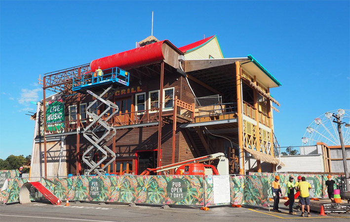Aussie World kept it trading throughout the structurally-challenging multimillion-dollar make-over, which includes over 500sqm of new decking at the front and sides, for drinking and dining.