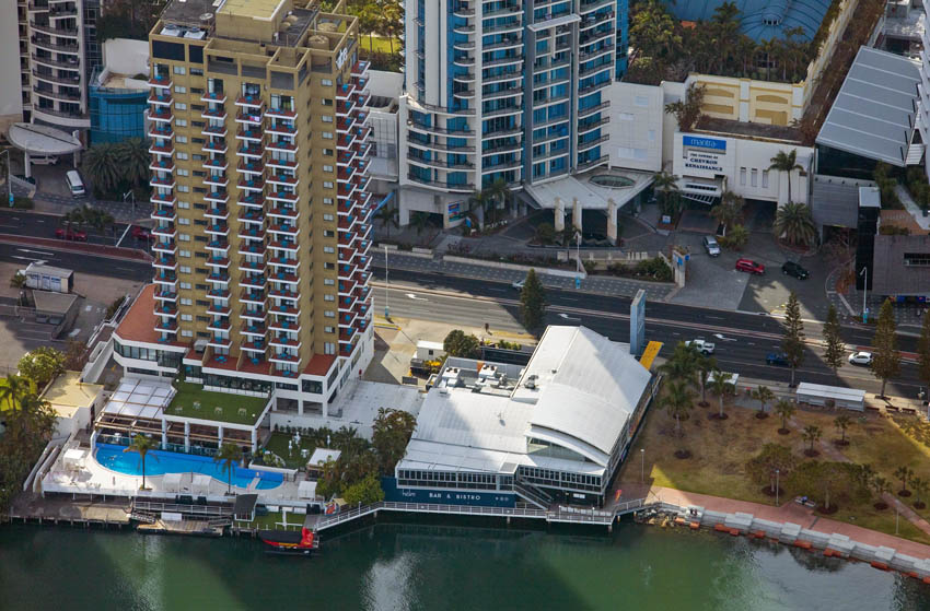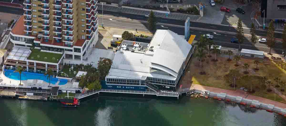 Located around 500 metres from the famous beaches of Surfers Paradise, The Tavern at The Vibe Hotel – previously Helm Bar & Bistro – overlooks the Nerang River, with significant frontage to the Gold Coast Highway.