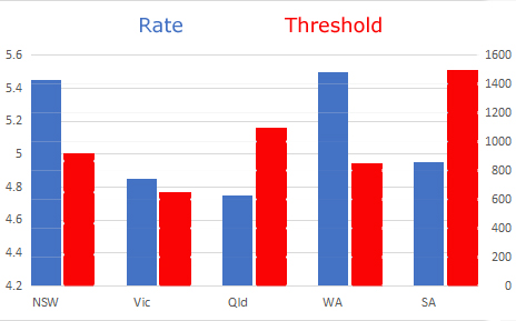 Unsurprisingly, Victoria and New South Wales find themselves at the top of the (lowest) Threshold scale, with Western Australia splitting them for second place.