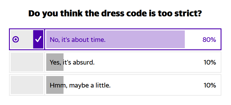 An online poll by Yahoo, counting 6,554 votes at time of publication, reports 80 per cent of respondents vote the Beach’s dress code is definitely not ‘too strict’.