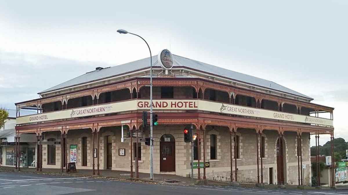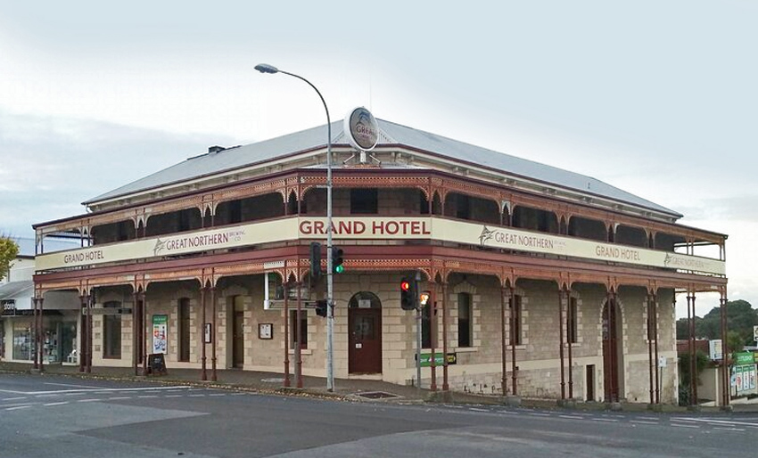 The elegant two-storey Grand Hotel, built in 1900 in the Federation style from local sandstone, is the most recent hotel to inhabit the town, behind the only other two nearby pubs, the Somerset and George hotels.