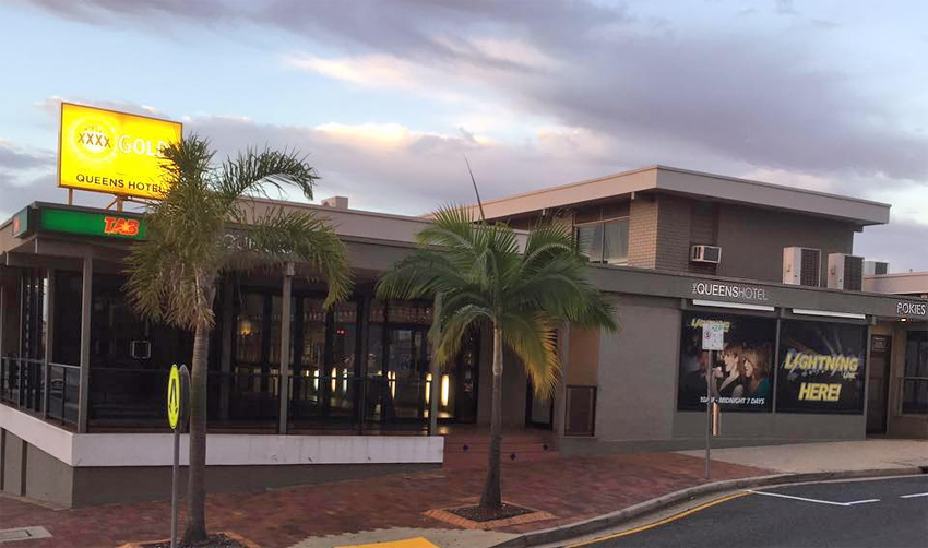 The Queens Hotel occupies 3,854 m² on the corner of Goondoon and Williams Streets, Gladstone, a town of around 50,000, about five-hundred kilometres north of Brisbane.
