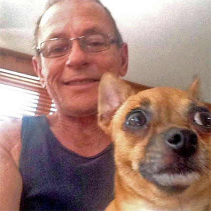 Raymond Matthews, resident of Woombye in the Sunshine Coast, goes everywhere with his assistance Chihuahua Kooy2, including around twice a week to Woombye Pub.