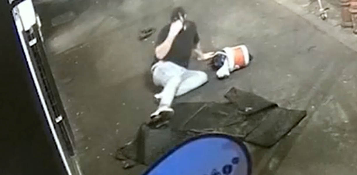He was caught on CCTV, last seen running from the hotel and tripping over on his ‘cape’.
