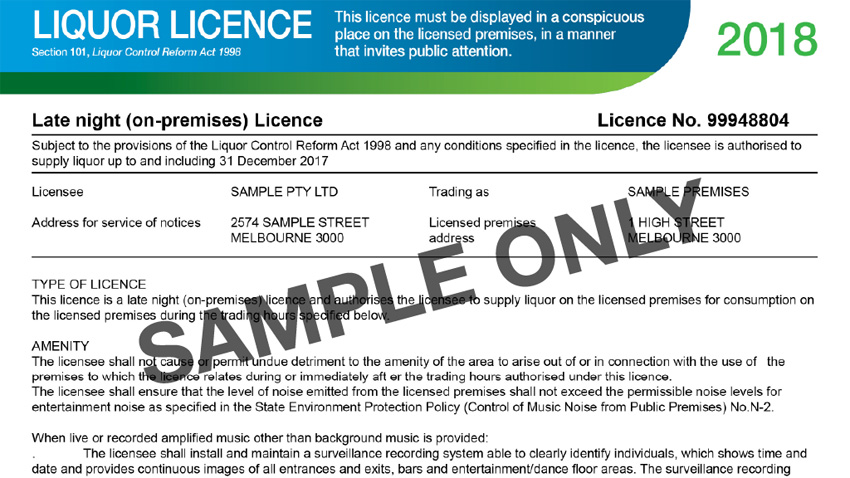 For more information see the VCGLR’s documentation on liquor licence renewals.