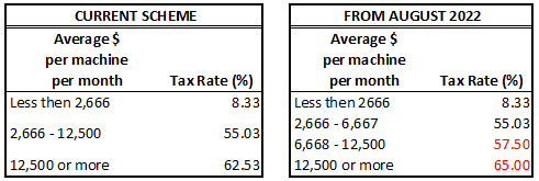 Further to this, the scaled tax rate based on earnings per machine will be increased in the upper brackets, for monthly revenue above $6,668 per EGM.