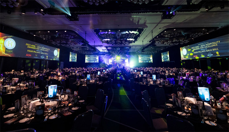 Around 1,100 guests and VIPs gathered last week at Crown Towers Perth to recognise this year’s winners at the Australian Hotels Association WA’s 2023 AHA-Aon Hospitality Awards for Excellence.