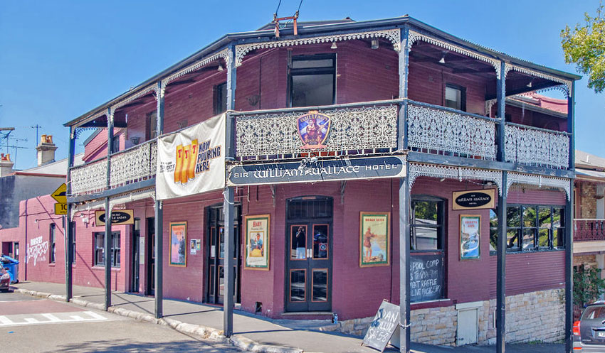 The pub is named in honour of 13th century Scottish knight William Wallace, who famously defeated English armies before ultimately being executed by King Edward I for high treason, as depicted in Mel Gibson’s 1995 blockbuster Braveheart. It is known to be a favourite haunt of Gibson’s when in Sydney, who began drinking there at age 20, long before he had heard of its namesake.