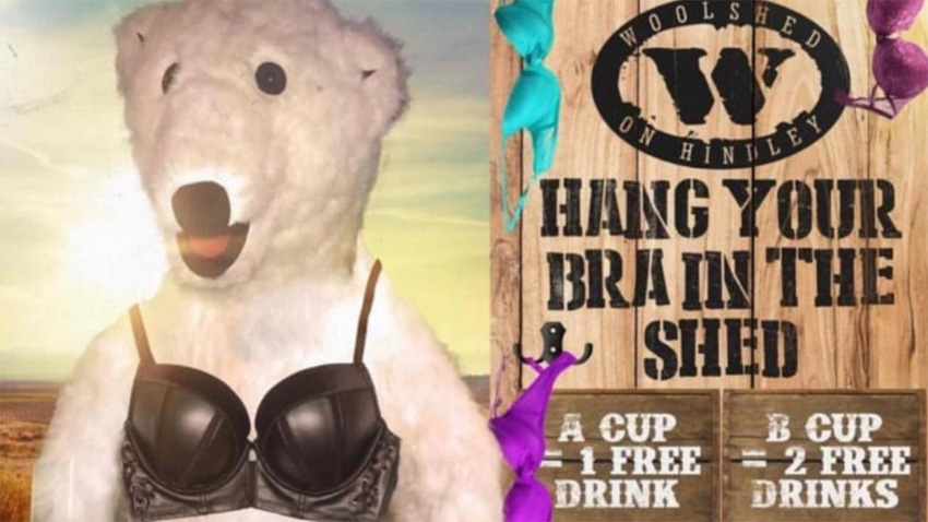 WOOLSHED SLAPPED FOR BRA-BASED DRINKS PROMO